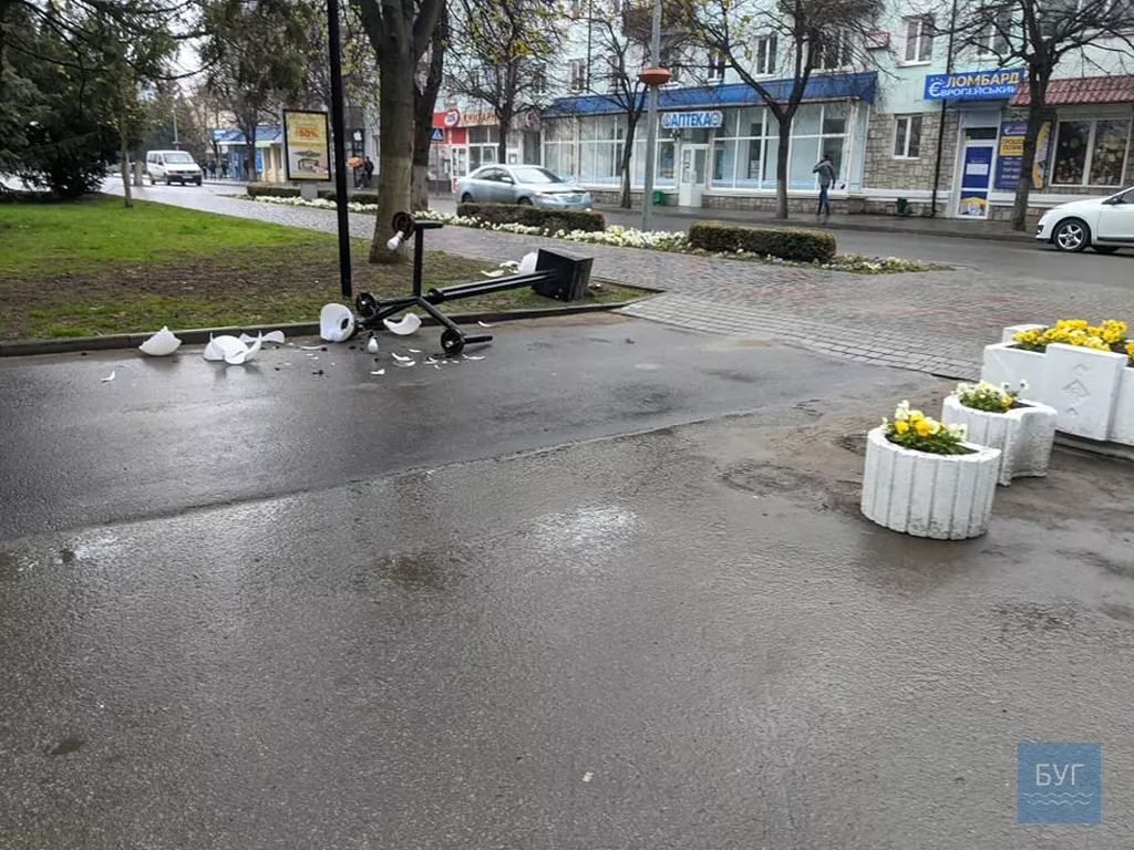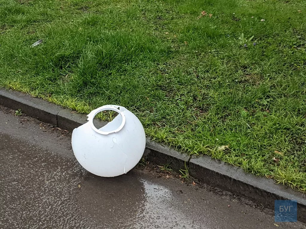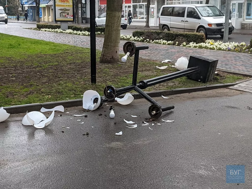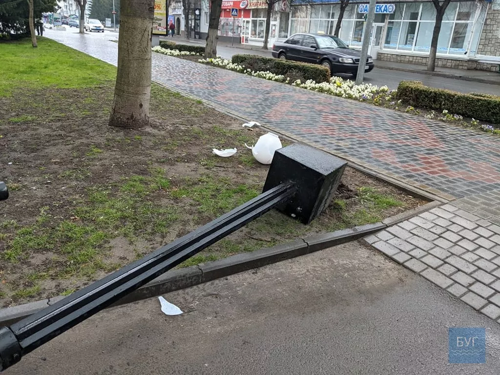 Вона впала, побилися скляні круглі плафони, що встановили не так давно. На місці працювали комунальники та оцінювали завдані збитки, а також поліція.