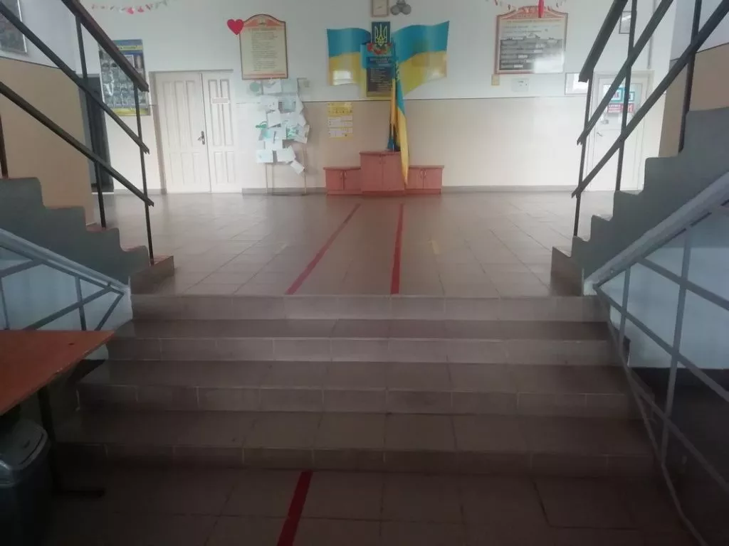 До слова, перед приміщенням є сходи, однак поруч обладнаний пандус. Натомість усередині приміщення містяться три сходинки, але тут пандус чи заїзд відсутній. Відтак, це може спричинити незручності у разі голосування осіб, котрі пересуваються на візку.