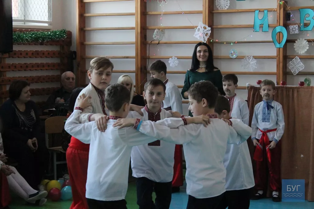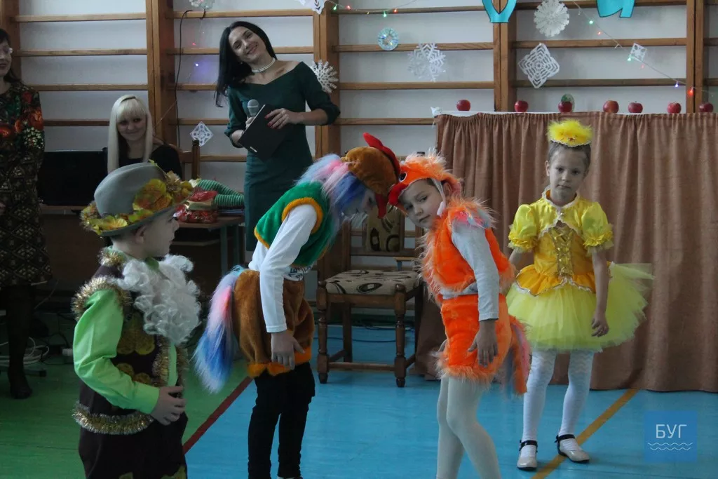 У виступі брали участь діти з різних класів. Кожному з них дісталась цікава роль: так, наприклад, молодші дітки були героями-козаками, півниками та курочками, а роль зимових персонажів дісталась старшим вихованцям школи.
