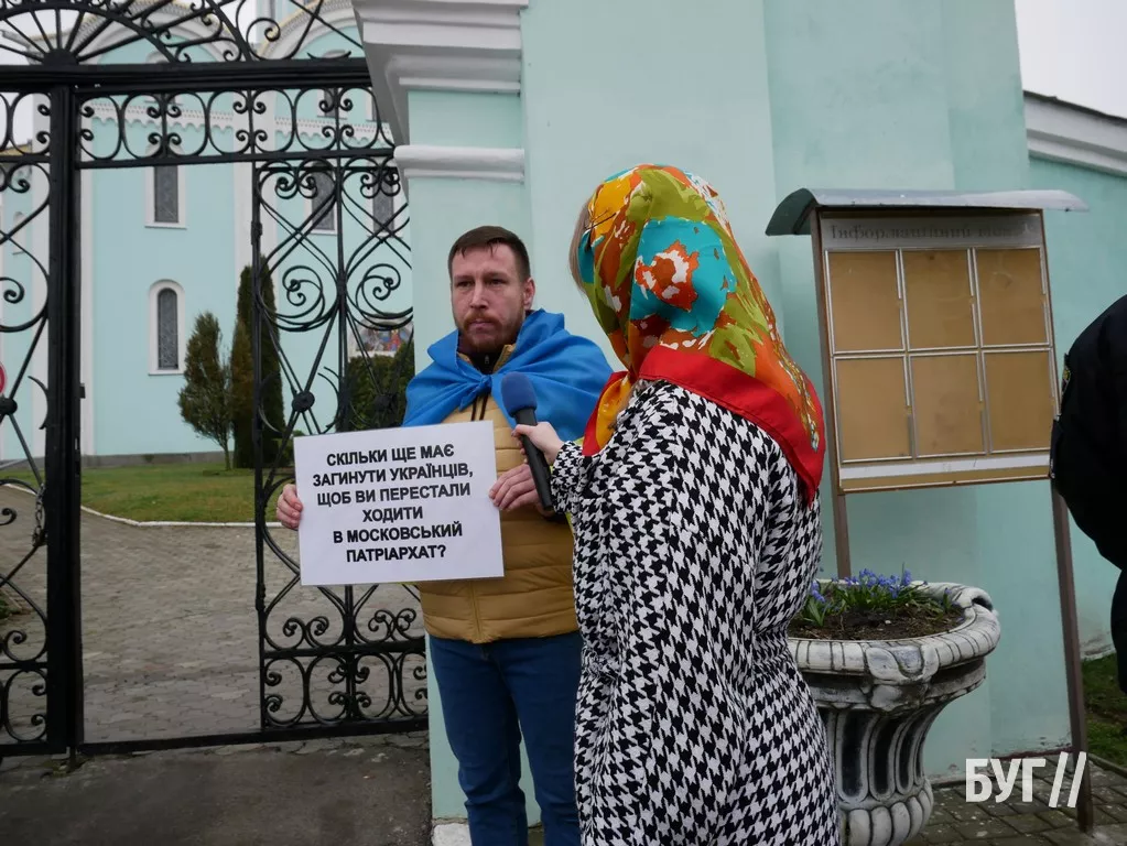 У коментарі БУГу Олексій Біянов розповів, що він прийшов до храму, щоб поставити питання людям, які досі його відвідують, написане на плакаті “Скільки ще має загинути українців, щоб ви перестали відвідувати цей храм?”. Щоб вони замислилися над тим, що фінансують ворога, який вбиває наших братів, сестер, батьків, рідних.