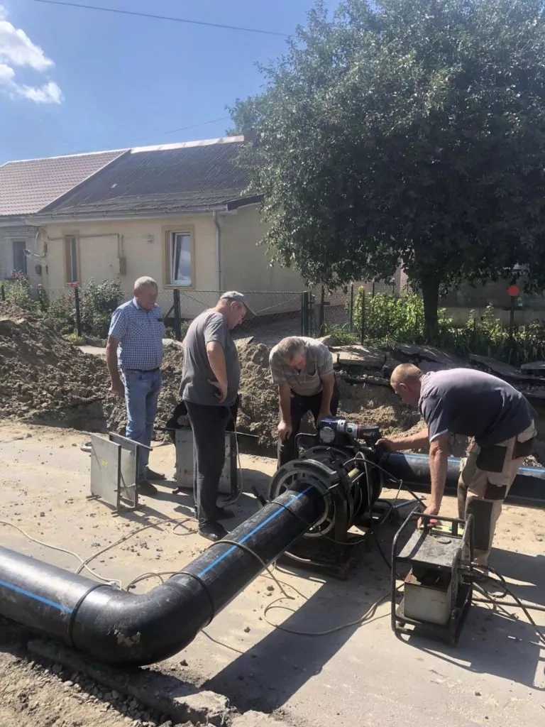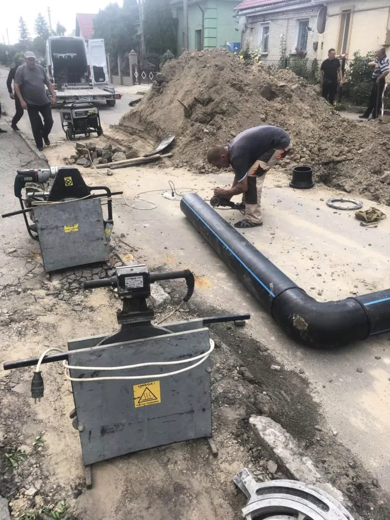 Разом із тим, завершили підготовку робіт по заміні старої металевої труби на поліетиленову діаметром 255 мм апаратом для стикового зварювання. Обладнання призначене для швидкого та якісного з’єднання водопровідних ліній при проведенні будівельних і ремонтних робіт.