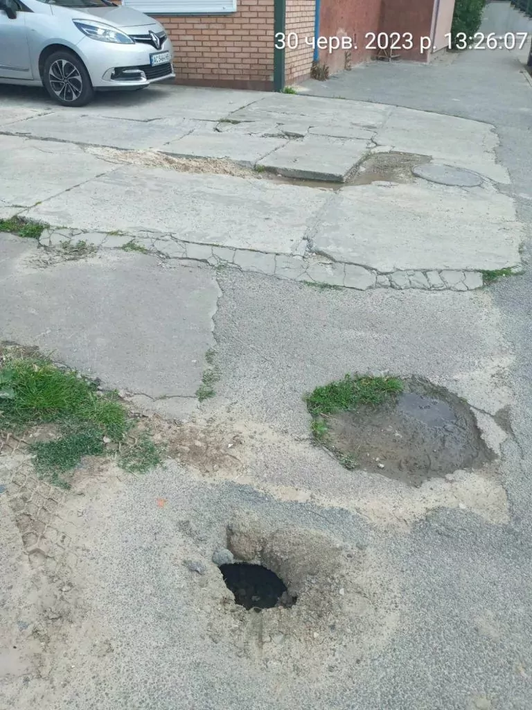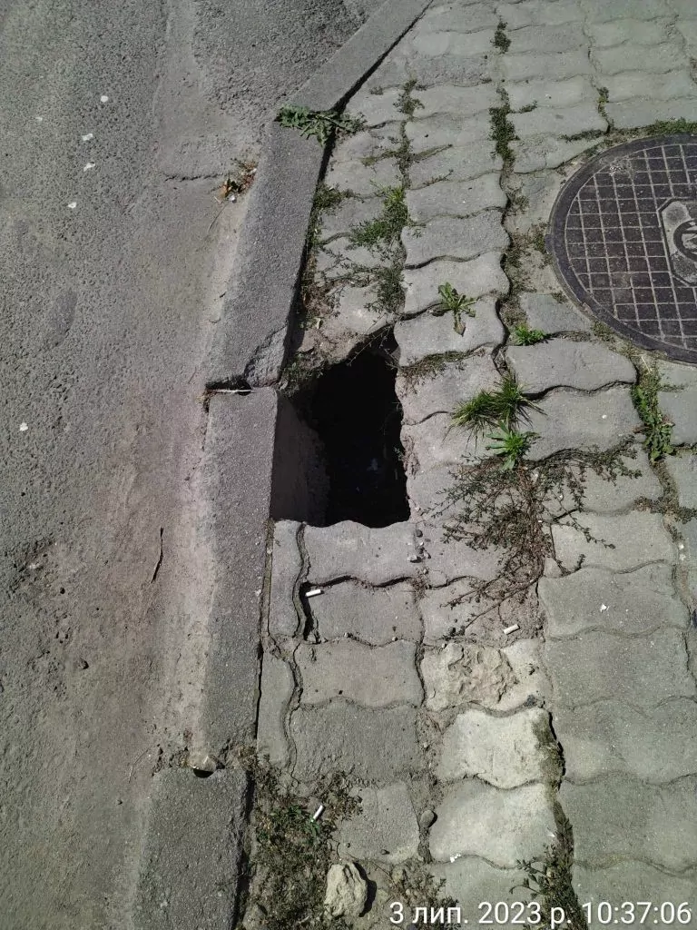 3-го липня інспектори муніципальної варти Володимира приобстеженні вулиць міста виявили неналежний стан пішохідної доріжки та пошкоджене асфальтне покриття.