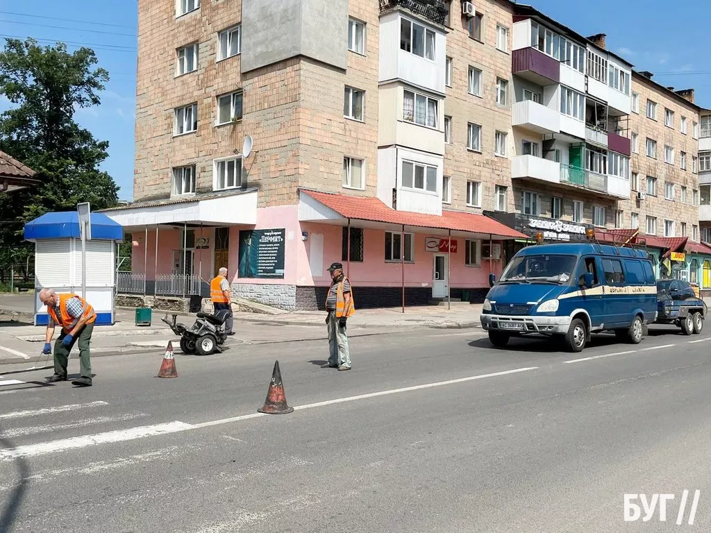 Зранку 14-го липня у Володимирі на вулиці Ковельській дорожні служби оновлюють розмітку на «зебрах».