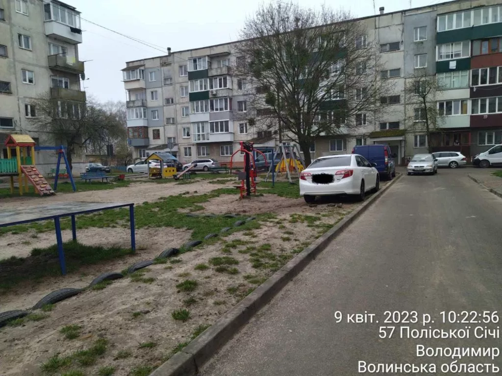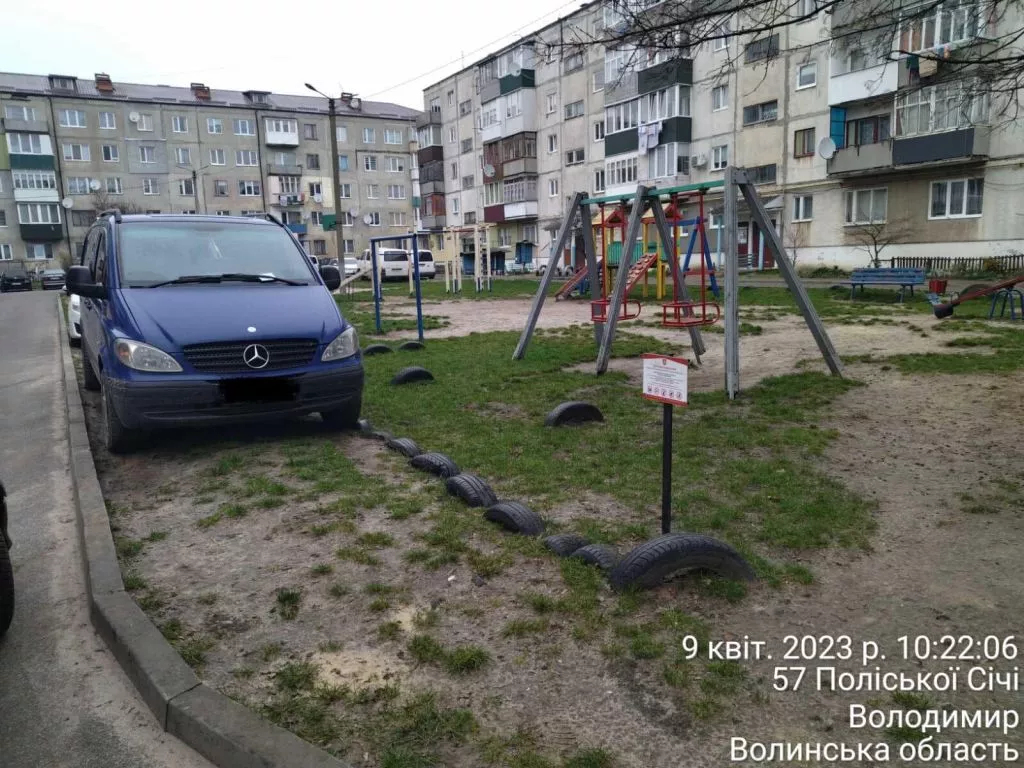 Опрацьовуючи вул. Поліської Січі 57 та вул. Академіка Глушкова 22 інспекторами з паркування було виявлено стоянку автомобілів на газоні, де був розміщений дитячий майданчик.