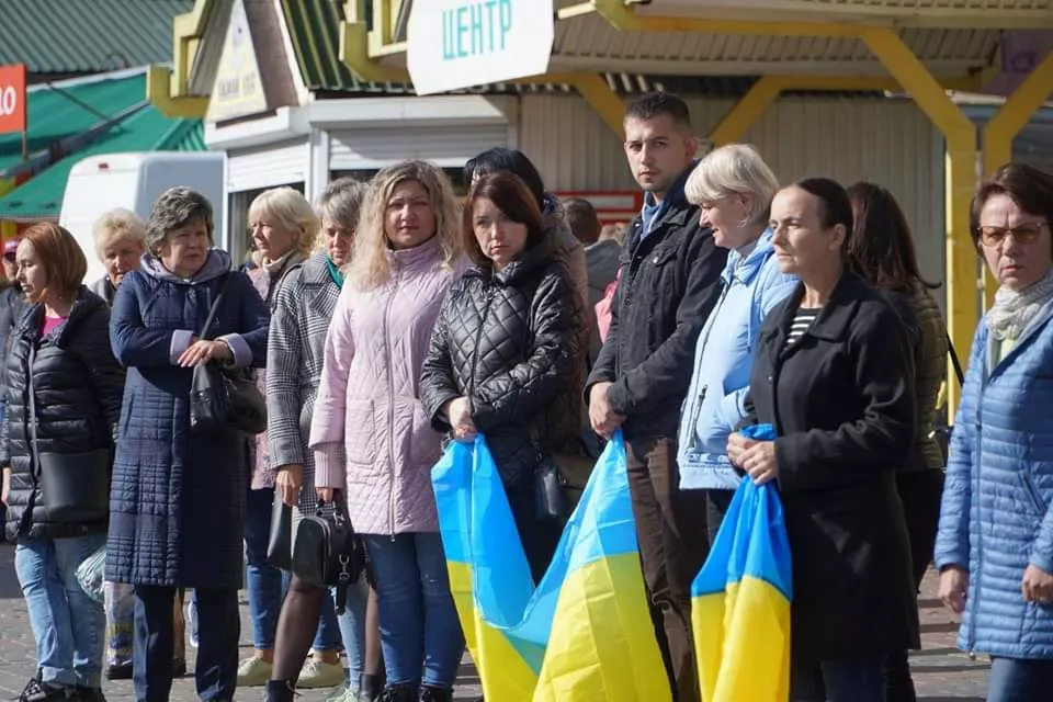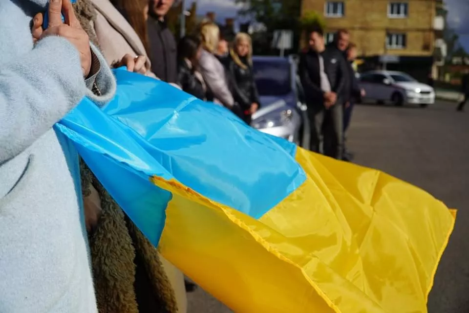 Траурний кортеж, який проїхав вулицями Володимира у напрямку кладовища, містяни зустрічали навколішки із синьо-жовтими та червоно-чорними прапорами у руках.