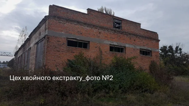 - цех хвойного екстракту загальною площею 461,7 кв. м, рік побудови – 1973-й, фундамент – бетонний, стіни – цегляні, підлога – бетонна, перекриття – залізобетонне, покрівля – шиферна.