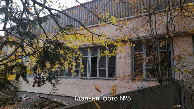 - їдальня загальною площею 371,6 кв. м з входом у підвал, сходами, ґанком, рік побудови – 1979-й, фундамент – бетонний, стіни – цегляні, підлога – бетонна, перекриття – залізобетонне, покрівля – шиферна;