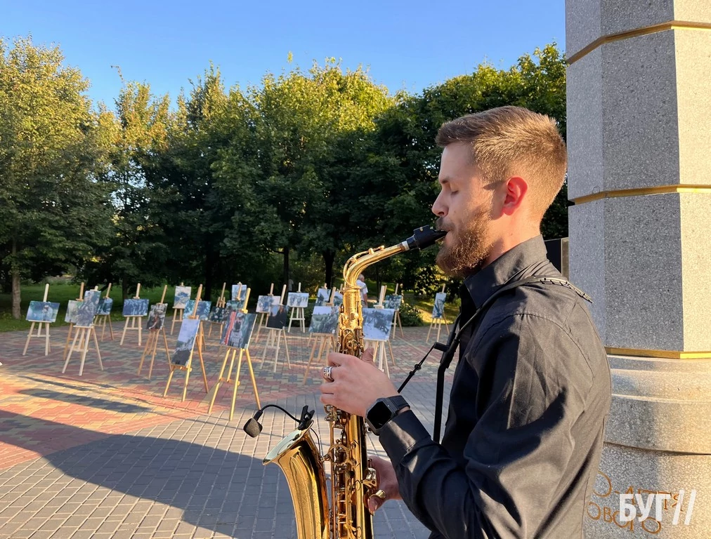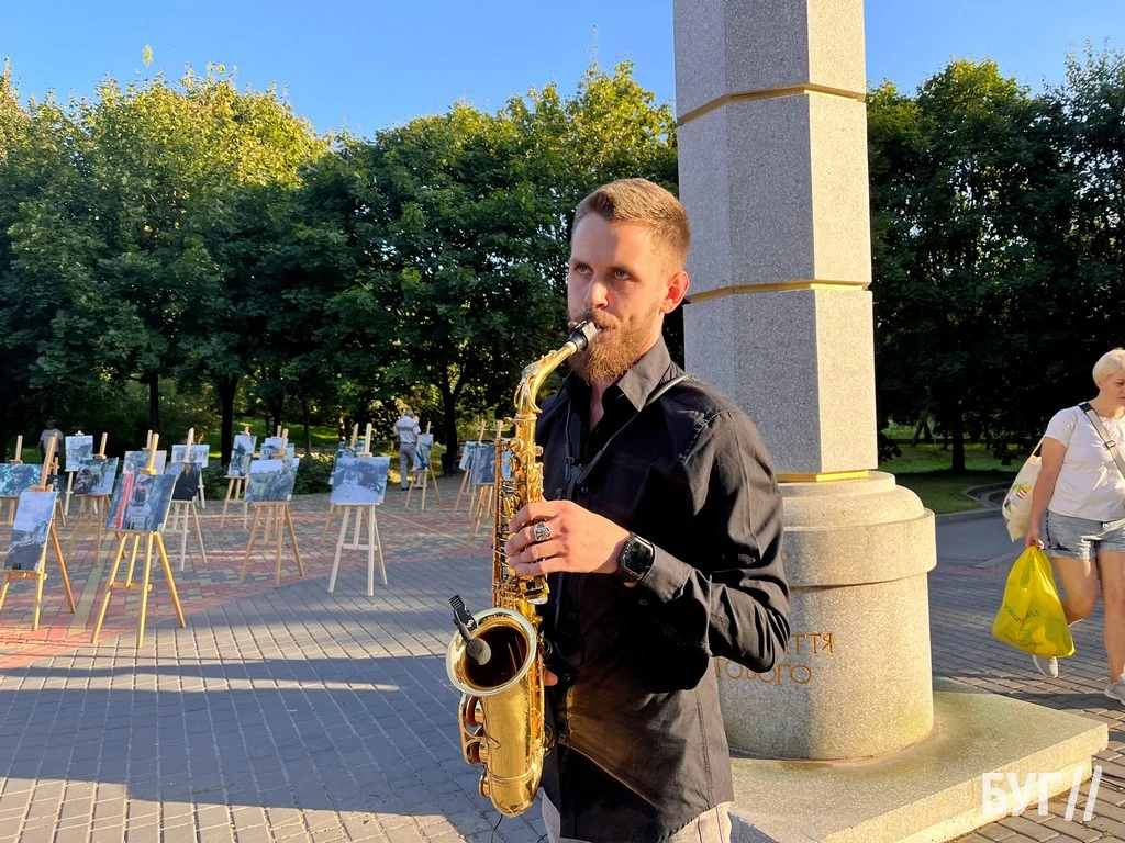 Присутні на заході мали можливість розглядати вражаючі світлини наших мужніх бійців під неймовірну гру оркестру 14 бригади та саксофону від Олександра Сукача.