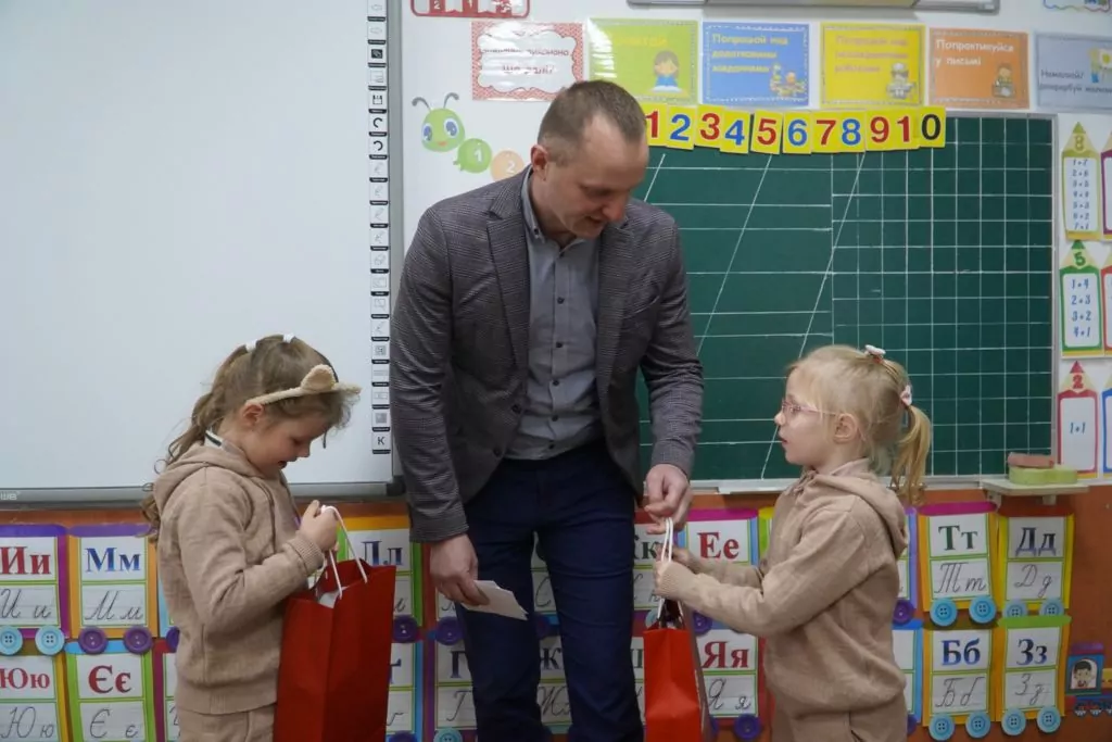 Вручаючи подарунки, побажав дівчаткам гарно вчитись, мати хороших друзів, сонячного настрою та щасливого дитинства під мирним небом України.