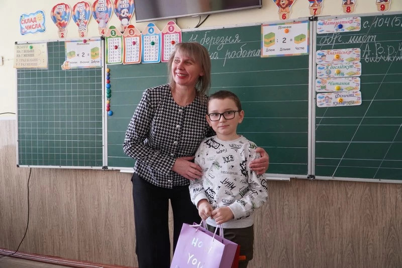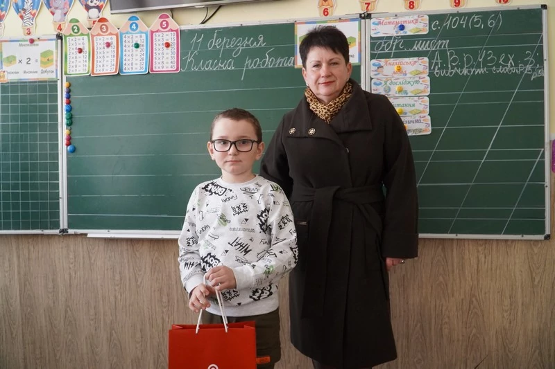 Вручаючи подарунок, побажала Ромчику рости здоровим, щасливим, добре вчитись, мати гарних друзів, бути добрим помічником своїй мамі.