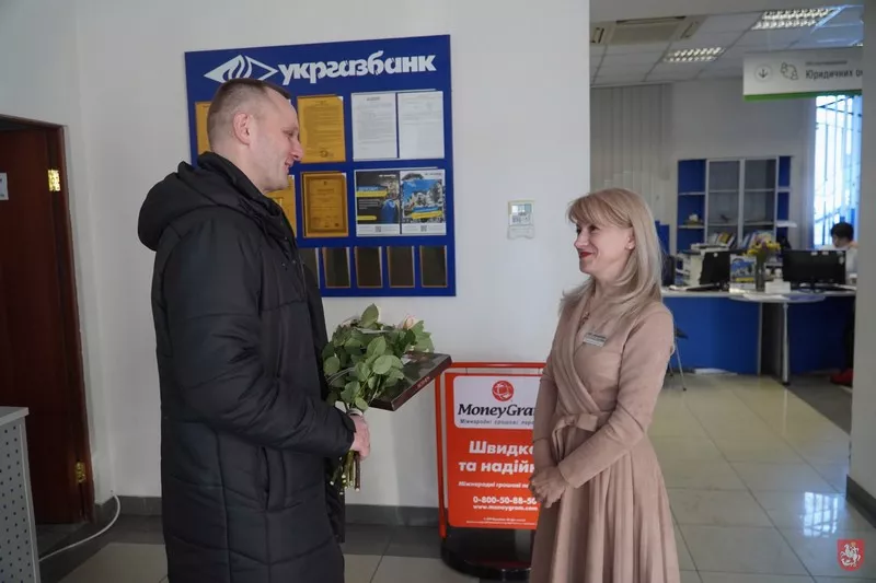 Касирка одного з місцевих відділень банку Ірина Колєснікова приймала вітання на робочому місці. Іван Юхимюк привітав іменинницю із золотим ювілеєм, побажавши їй міцного здоров’я, усіляких життєвих гараздів та переможного миру нашій Україні.