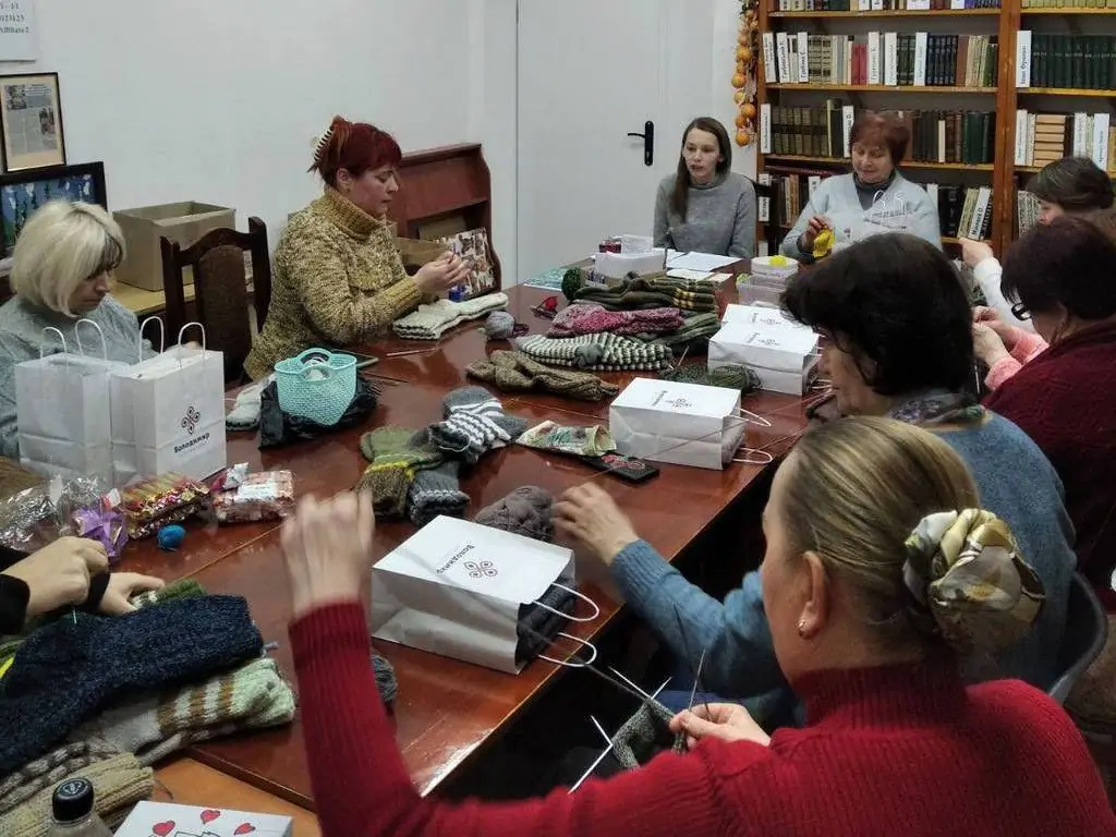 Понад два роки, з невеликими перервами на літні канікули, біля двадцяти жінок-рукодільниць з числа місцевих мешканок, внутрішньо переміщених осіб та читачів бібліотеки приходять щоп’ятниці у книгозбірню аби поспілкуватись та зв’язати шкарпетки для бійців ЗСУ, а також, на замовлення військовослужбовців, адаптивні шкарпетки для поранених воїнів, спеціальні рукавиці для операторів дронів.