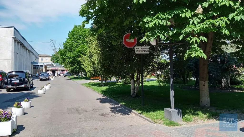 Проте варто зазначити, що не дивлячись на виконане пониження для заїзду автомоблів, “дорога” до готелю залишається тротуаром, де проїзд і так заборонено.