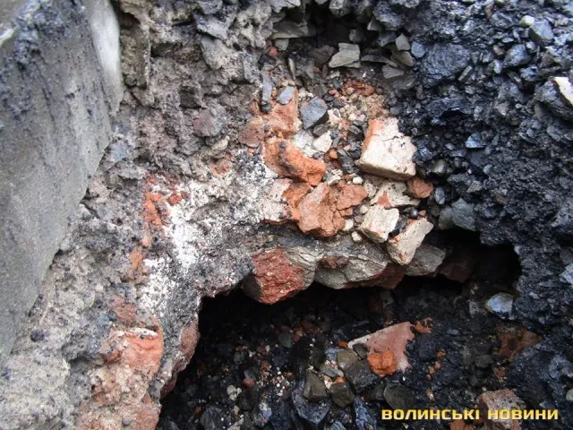 У Володимирі-Волинському на вулиці Данила Галицького, через яку пролягає міжнародна траса до Польщі, провалився асфальт, відкривши давній підвал.