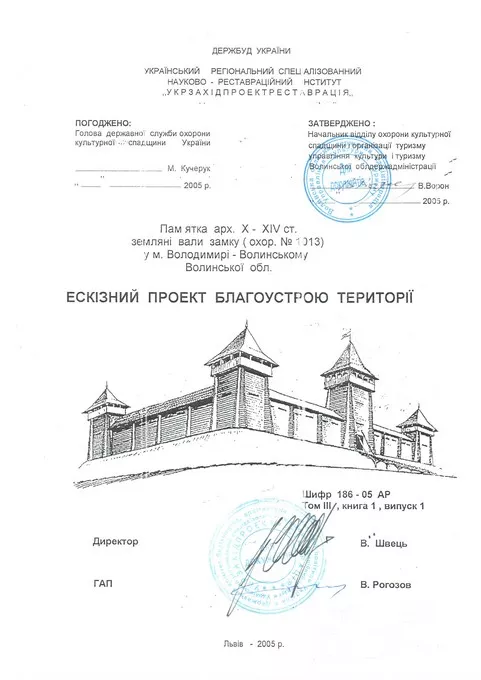 Вважаю, що перш, ніж робити такий відповідальний проект, треба було перетяти вал археологічно, продатувати його, взнати ґенезу, розшифрувати конструкцію(ї), можливі надбудови, оскільки проектувати на таких пам’ятках треба науково обґрунтовано, а не “наукообразно”. Ми про ці земляні насипи рівно нічого не знаємо, бо їх ніхто не досліджував. На якій же підставі ми проектуємо ці свідомо бутафорійні об’єкти? Боюсь, що в процесі реалізації проекту реальні рятівні археологічні результати ніхто не враховуватиме, бо деталі “конструктора” будуть вже оплачені, виготовлені і привезені на місце. Отже, перш ніж приступати до пропозицій реставрації і благоустрою земляних валів, треба здійснити хоч би розвідкові їх археологічні дослідження. Чи не здається Вам нелогічним, наприклад, що мурований замок ХІV ст. князя Любарта-Дмитра менший за периметром від земляних валів? Чи не підказує Вам ця обставина, що земляні насипи є пізнішими від мурованого замку? А що в такому випадку було тут в ХІІІ ст. і раніше? На це питання відповість лише археологія і тому вона тут має бути пріоритетною. На мою думку має бути так: 1. Відмежування городища, як заповідної території, від міста (сітка або вода), реставрація внутрішнього будинку і введення туди функції заповідника (музей, археологічні фонди); 2. Археологічні розвідувальні роботи: а) перетин(и) валу; б) локалізація мурів і веж замку Любарта; 3. Проект благоустрою і планомірного використання заповідної території.