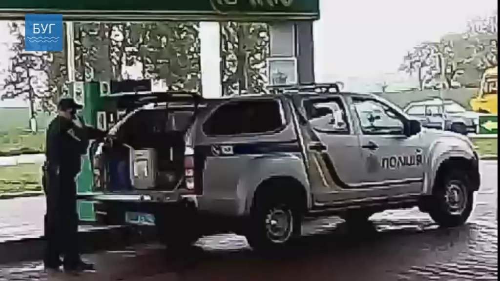 Зранку, 8-го травня, на заправці WOG по вулиці Устилузькій водії стали свідком, як поліцейський заправляє пластмасову каністру, котра стоїть в кузові службового авто.