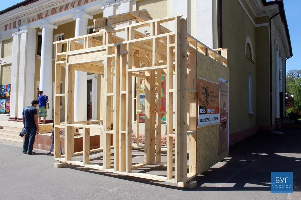 Щоб не розповідати про методику будівництва на словах, організатори заходу вирішили усе показати наочно. Біля стін КМЦ за кілька годин зібрали каркас для невеличкої споруди.