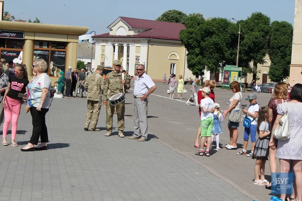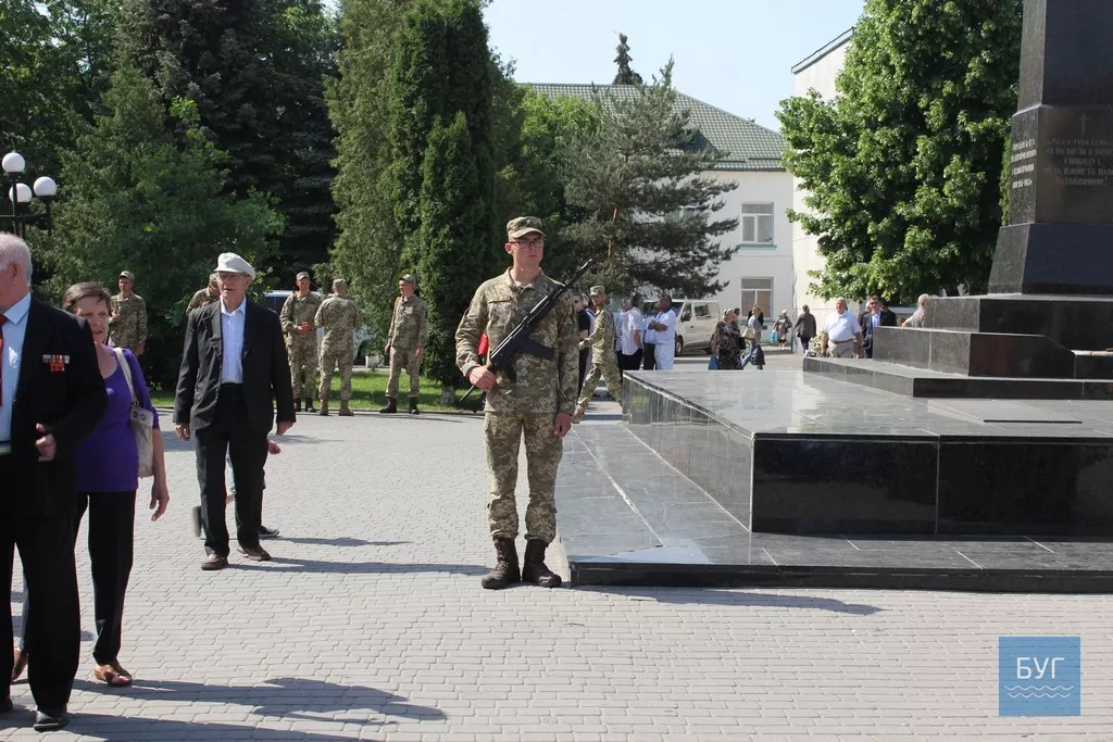 З вітальними словами до присутніх звернулися голова міськрайонного організацій ветеранів війни та праці Володимир Сєдой, заступник командира першого зенітного ракетного девізіону з морально-психологічного забезпечення зенітно-ракетного полку підполковник Володимир Пашков. Незмінно музичний та церемоніальний супровід всіх заходів забезпечував військовий духовий оркестр 14-ої окремої механізованої бригади під керівництвом старшого лейтенанта Ярослава Короля.