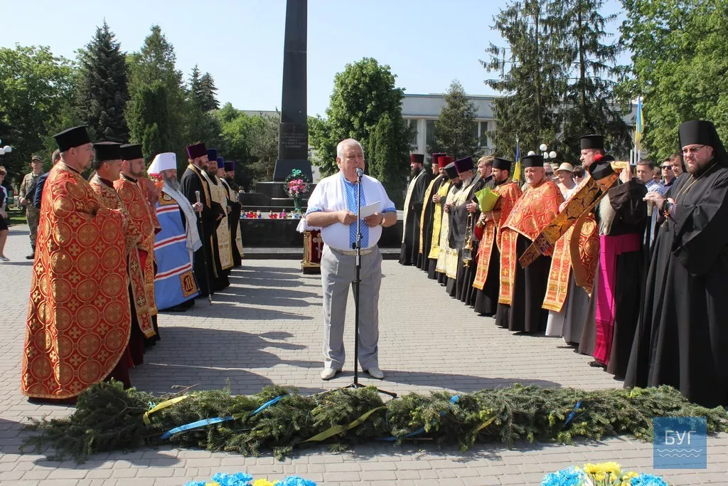 Далі відбулася спільна молебень за загиблими у роки 2-ї світової війни, а також учасниками АТО. Духовенство спільно з представниками міської влади поклали квіти до пам’ятників.