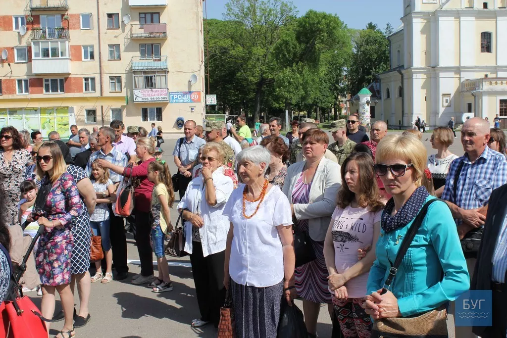 На головній площі Володимира-Волинського зібралося чимало містян. Мер Петро Саганюк привітав присутніх з Днем перемоги.