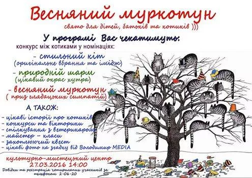 Крім того, господарі тварин зможуть дізнатися у ветеринара, як правильно доглядати за домашніми улюбленцями. А дітям та їхнім котикам організатори обіцяють конкурси, вікторини, квести і цікаве фото на згадку.