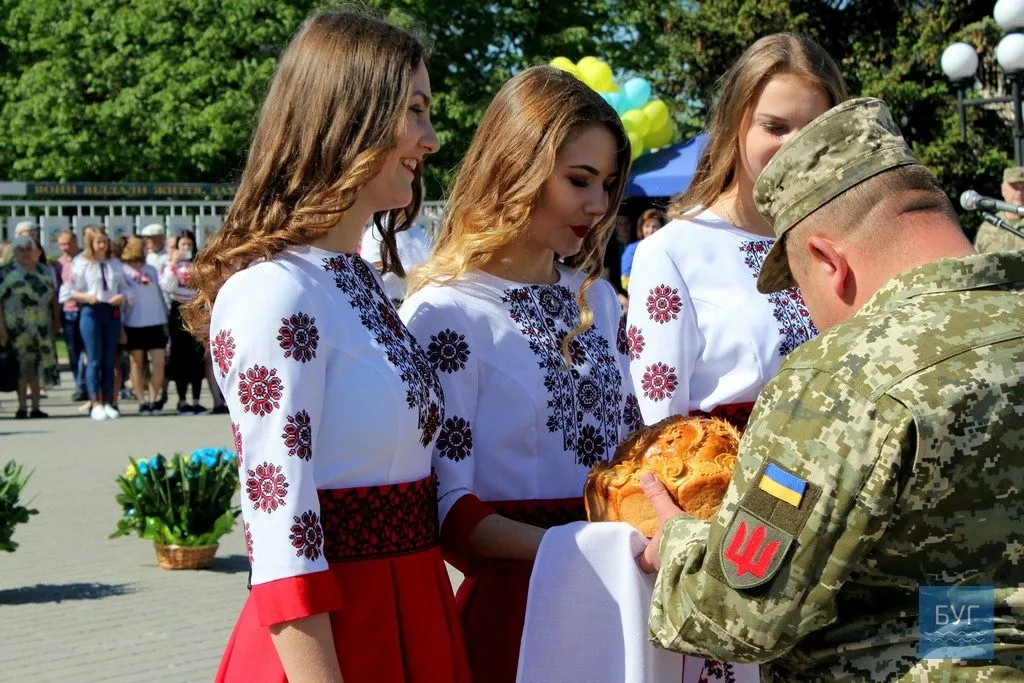 На центральній площі зібралося кілька сотень містян, які зустрічали військових з квітами.