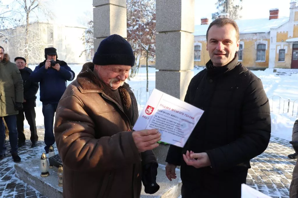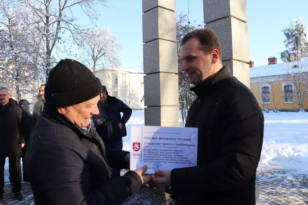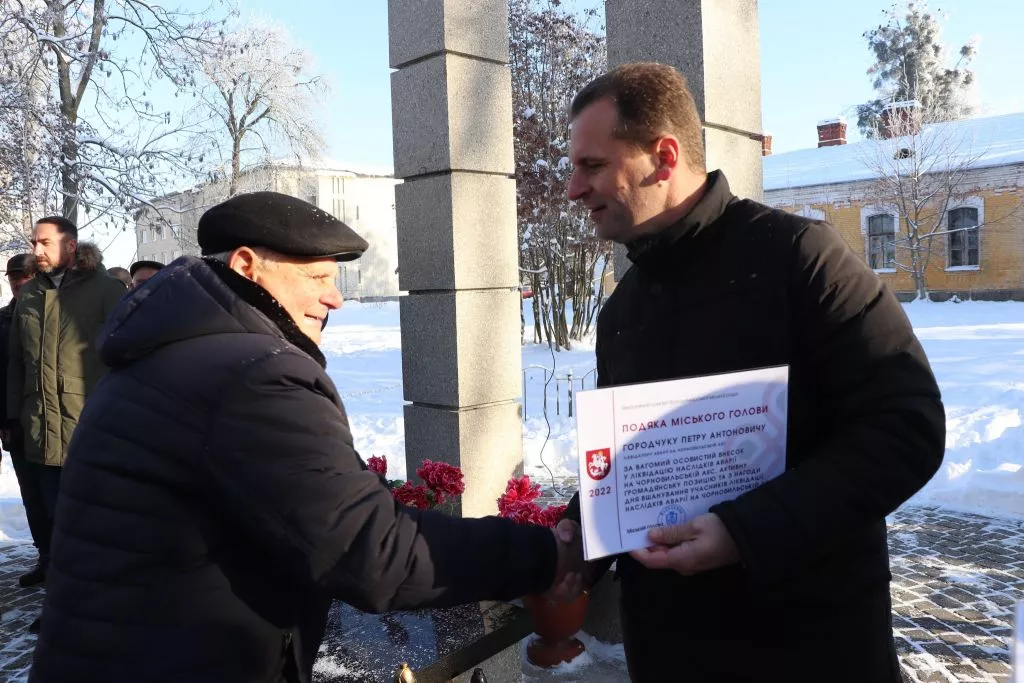 Окремі нагороди ліквідаторам вручила Світлана Богайчук від ГО “Спілка Чорнобиль”. Перед початком заходу керівниця організації разом із міським головою Ігорем Пальонкою відвідала стаціонарне відділення міського територіального центру соціального обслуговування, де мешкає 67-річний учасник ліквідації наслідків аварії Анатолій Мазейчук.