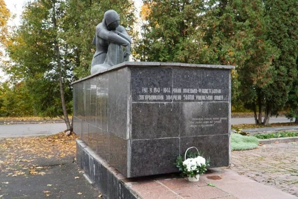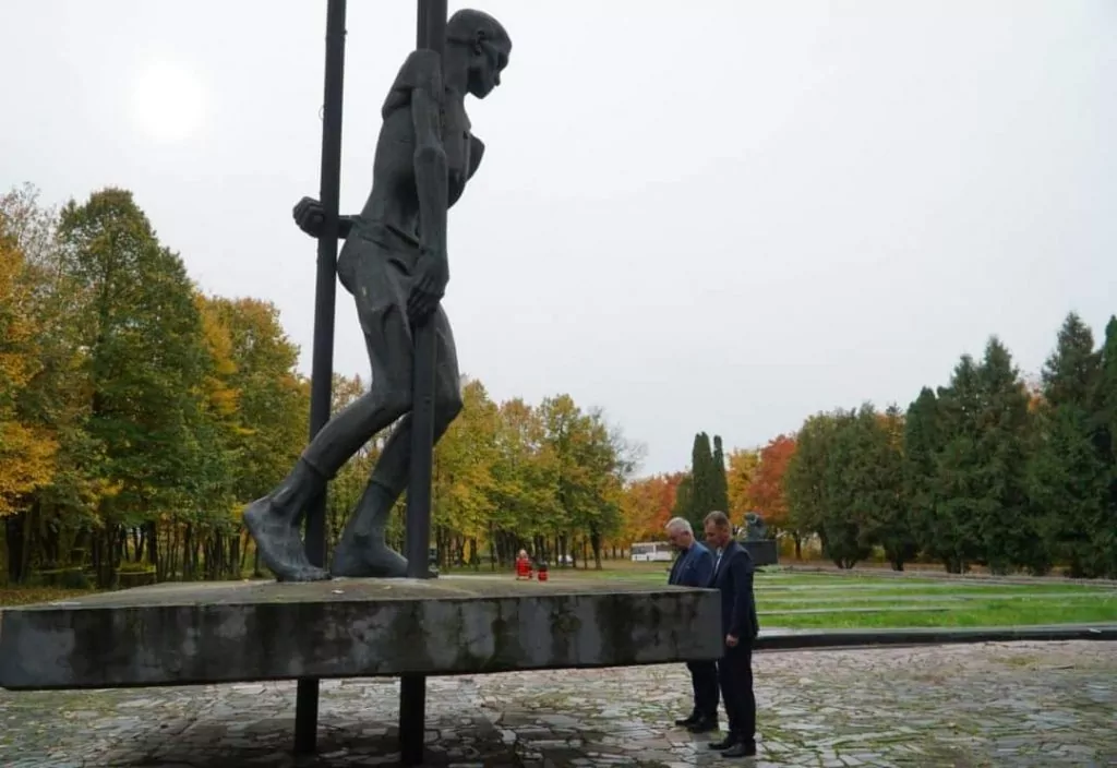 Міський голова Ігор Пальонка та голова районної ради Віктор Хиць принесли квіти та лампадки до меморіального комплексу “Жертвам фашизму”.