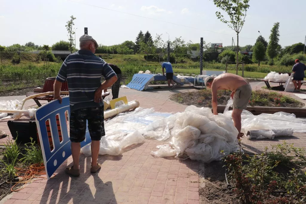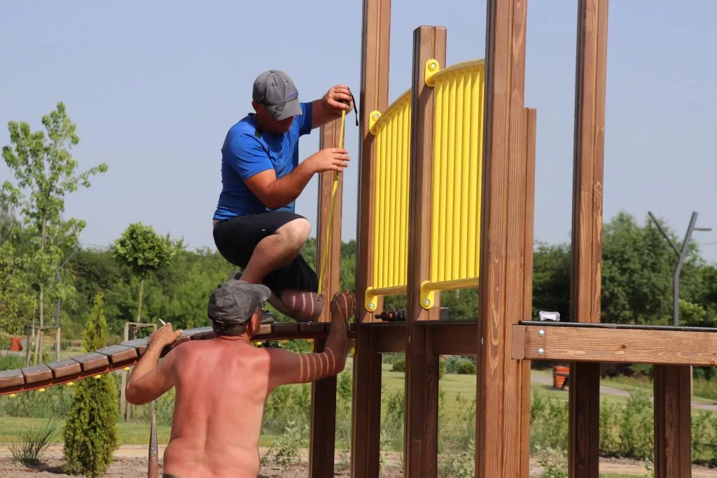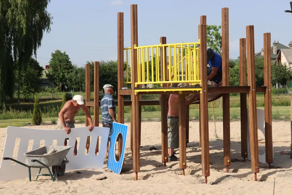 У володимирському парку на Риловиці розпочали монтаж конструкцій ігрового майданчика