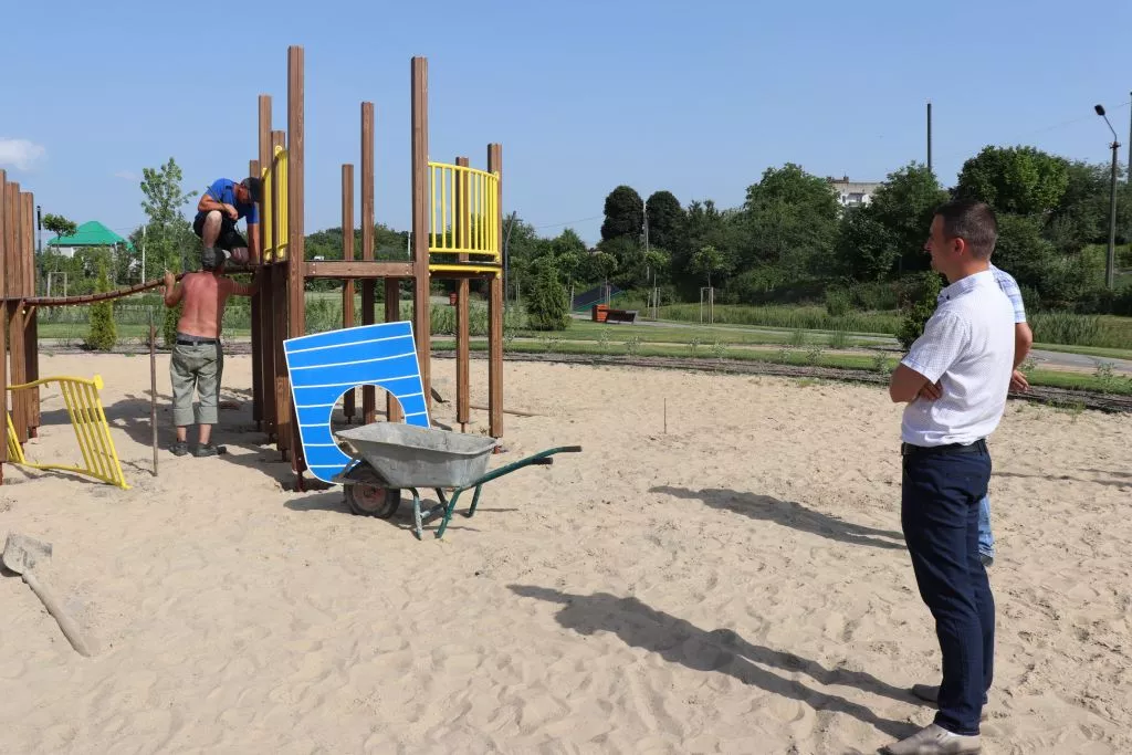 Як обіцяють підрядники, монтаж усіх елементів дитячого майданчика буде завершено у п’ятницю, 25-го травня, а 26-го травня конструкцію укріплюватимуть бетоном, – повідомляють на сайті міста.