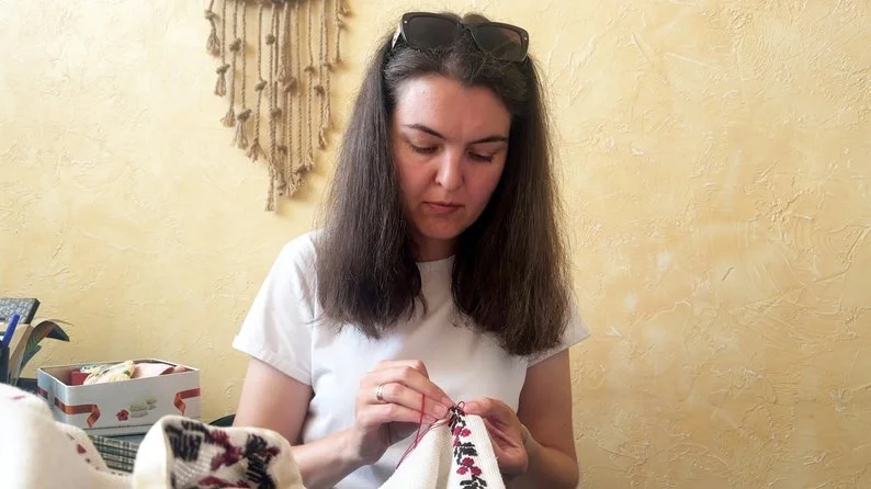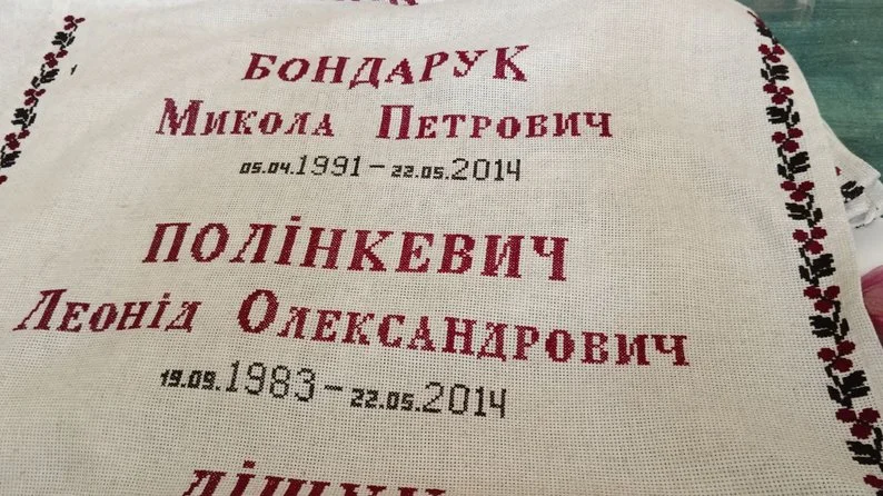 “Двоє діток лишилося, 17 років в шлюбі щасливому були. Думала: відволічуся, вишиваючи. Але кожне прізвище, кожного хлопця пам’ятаєш, як везли. Тяжко”, — говорить дружина загиблого військовослужбовця Яна Борисова.
