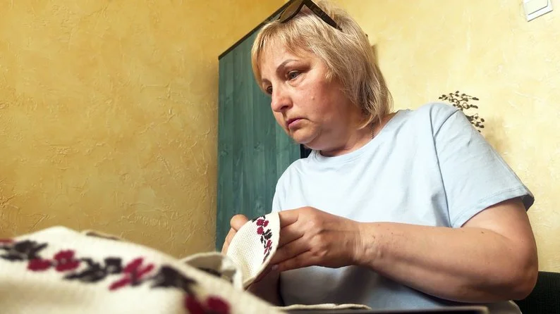 “Я освоїла машинну вишивку. І якраз саме тризуб вишила машинною вишивкою. Бо руками трішки важко. Кожне ім’я — це цілий світ, і кожна дата народження — це історія кохання, це історія життя, мрій, які не здійснилися”, — говорить дружина загиблого військовослужбовця Ірина Смірнова.