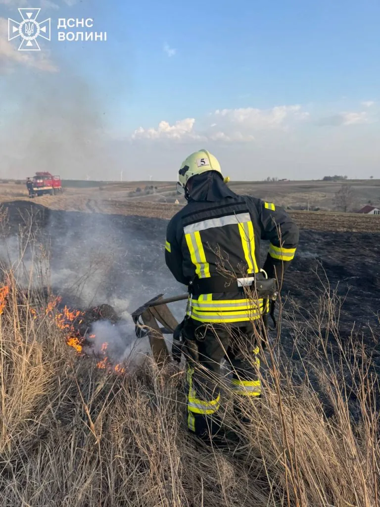 У Володимирському районі протягом доби рятувальники ліквідували три пожежі сухої рослинності.