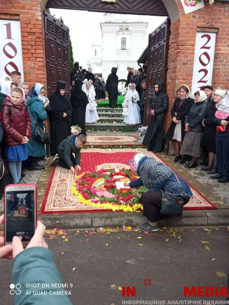 Біля монастиря з самого ранку почали збиратись віряни. Вхід до храму люди вистелили квітами.