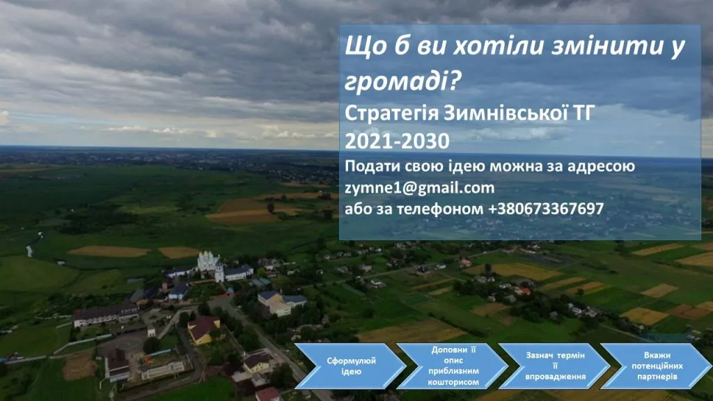 Усіх бажаючих запрошують долучитись до цього процесу шляхом подання своїх ідей проєктів і заходів, які можуть потрапити до плану реалізації на 2021-2023 роки, – повідомляють на сайті Зимнівської громади.