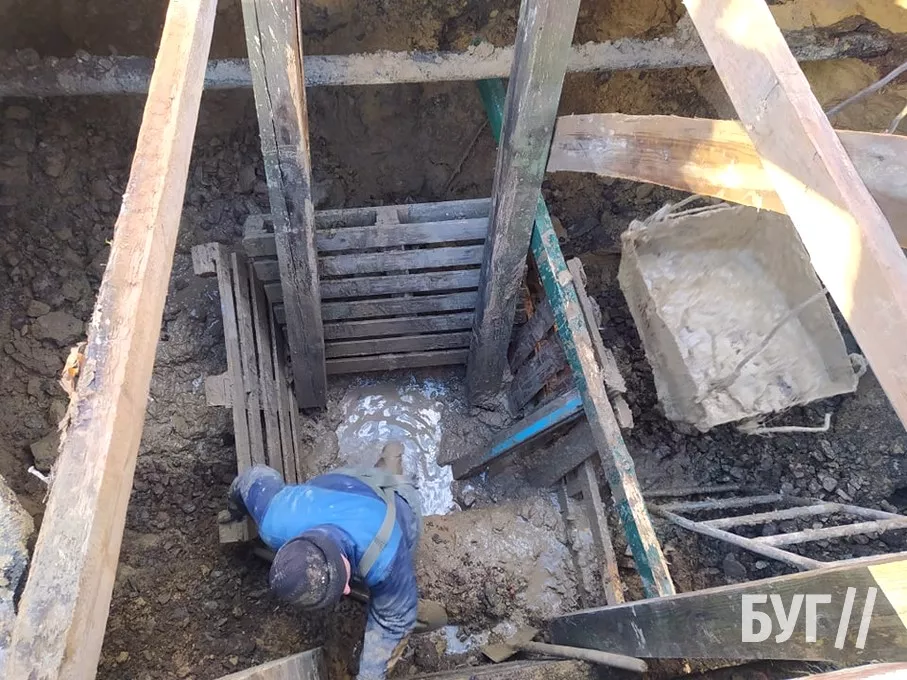 Роботи проводяться на глибині 4 метри, і ускладнюються тим, що на цій ділянці дуже розмитий ґрунт, який спричинив обвал, через що утворився чималий котлован, – повідомляє водоканал Володимира.