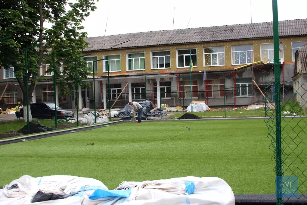 На подвір’ї школи також ведуться активні роботи з облаштування спортивного майданчика зі штучним покриттям. Зі слів підрядника, розповів Пальонка, якщо будуть сприятливі погодні умови, то вже в липні поле буде готове. Сюди зможуть ходити не тільки школярі, але і інші дітлахи з села.