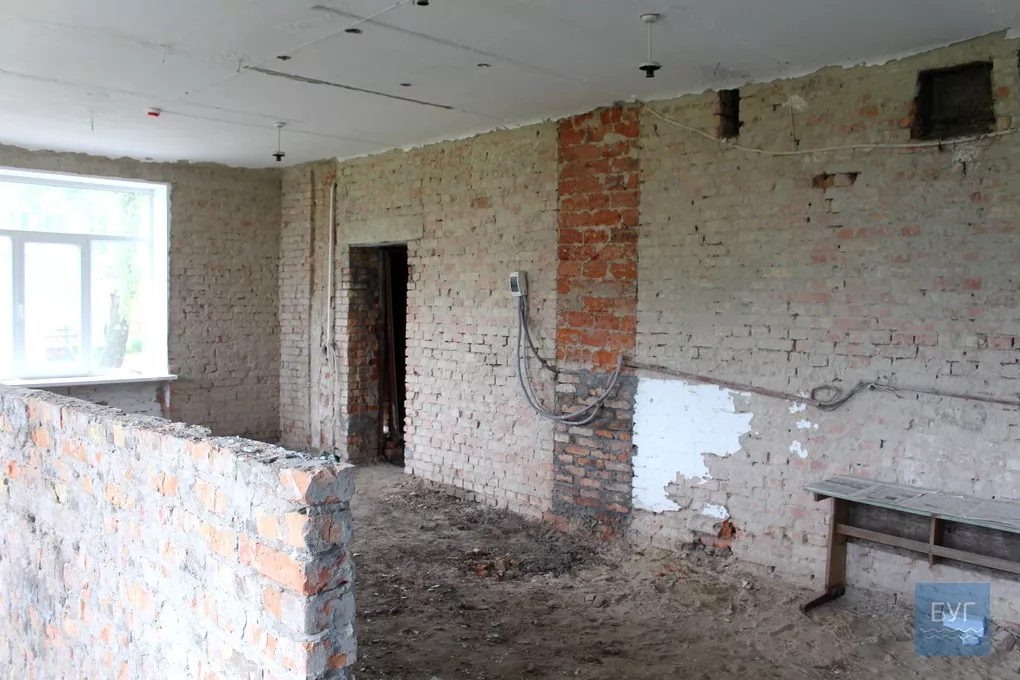 Їдальня і кухня дійсно потребувала ремонту, тому вирішили його виконати за кошти громади. Сьогодні в харчоблоці ведуться підготовчі роботи. Стіни, стелю та підлогу оббили до цегли.