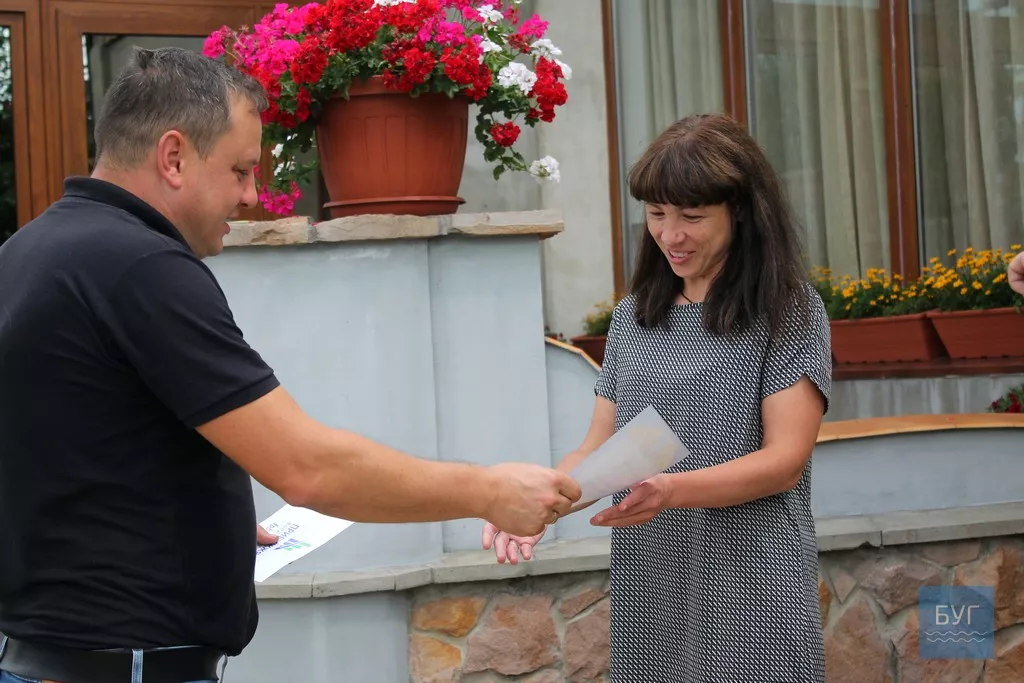 Переможець номінації «Краще озеленення двору багатоповерхівок (ОСББ, ЖБК, будинок під управлінням)», у відповідь на відзначення, подарувала гостям дошки для нарізання ручної роботи та з власним художнім розписом.