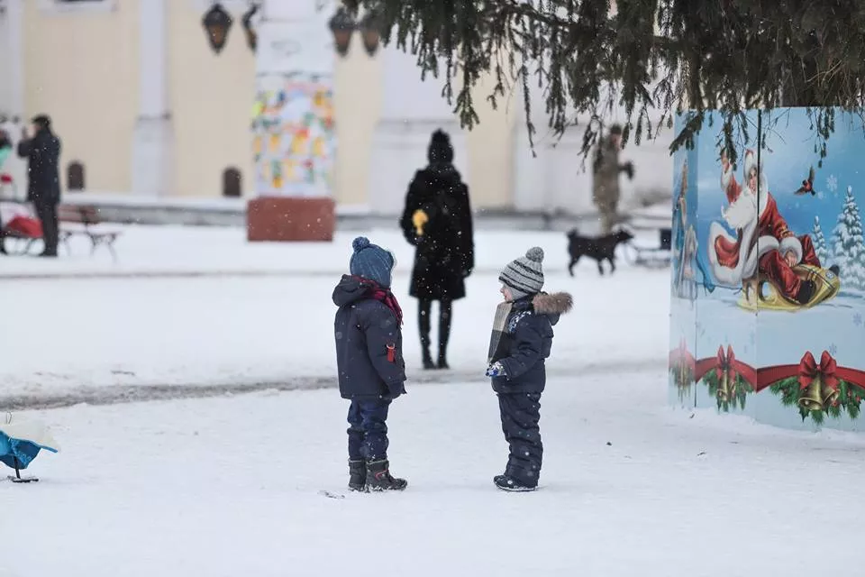 Іван Дуда, фотограф із Володимира-Волинського, показав у фотографіях як на головній площі міста діти святкують Різдво.