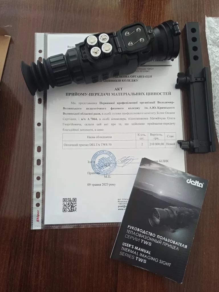 Володимирський педколедж зібрав 210 тис. грн та закупив для бійців два тепловізійні приціли