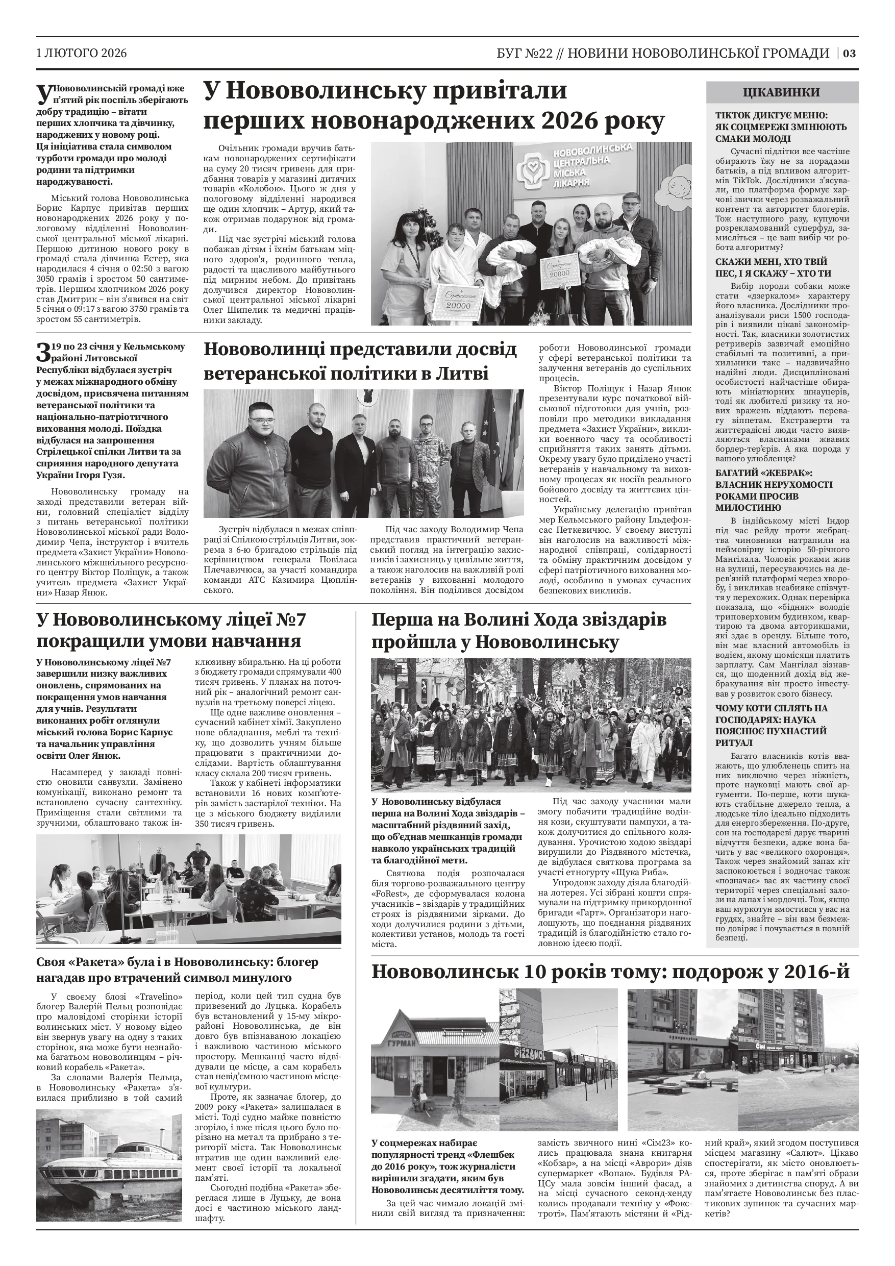 Читачі знайдуть у номері й міські новини та ретро-історії. Традиційно у випуску — актуальні вакансії, а також корисні поради про те, як зігрітися в домівці у холодний період та матеріали про повсякденне життя громад.