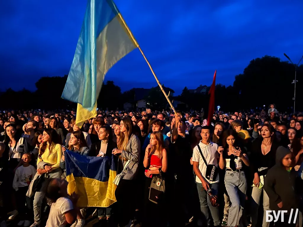 Музиканти виконували, як хіти власного виконання, так і відомі українські пісні. Публіка, яка вочевидь скучила за подібним дійством, підспівувала виконавцям, чи не на кожному треку, а також самі співали “Червону руту” та “Червону калину”. А, коли стемніло, створили неймовірне зоряне сяйво за допомогою ліхтариків. На концерт глядачі взяли із собою жовто-блакитні та червоно-чорні прапори та іншу патріотичну символіку. Скринька для збору коштів була переповненою. Концерт близько десятої години.