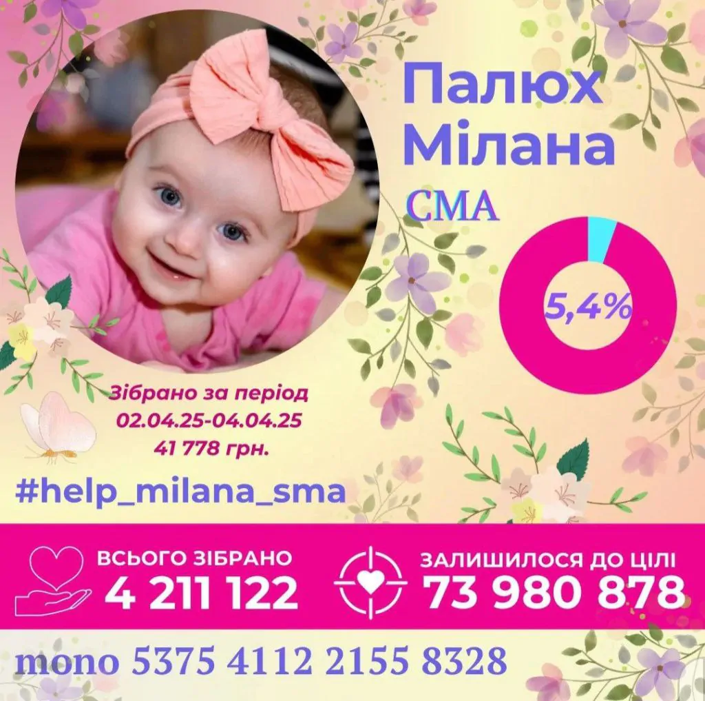 Пізніше зустрінемося з педіатром й пройдемо усі необхідні обстеження. Зараз збір продовжується. Він хоч і активний, та йде повільно, бо ж сума потрібна величезна. Наразі зібрано лише 5,2%. Ми рахували, якщо об’єднається 400 тисяч людей і кожен задонатить лише 179 гривень, нам вдасться закрити збір. На жаль, попри те, що надходження на картку відбуваються щоденно, до остаточної суми ще далеко», – наголосила мама Міланки.