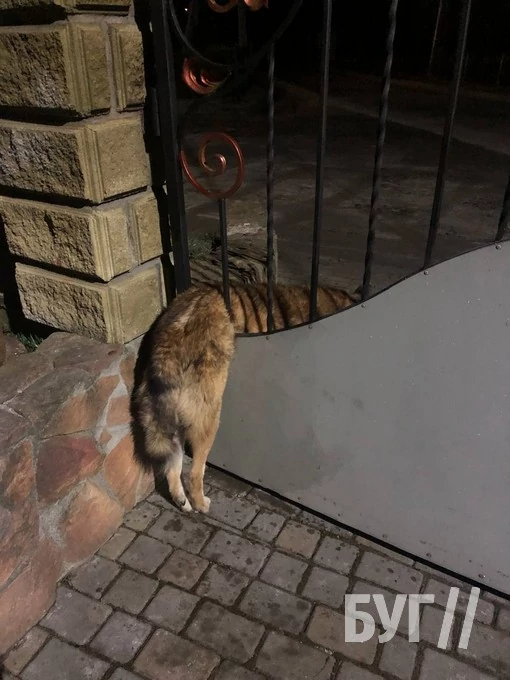 Сім’я, яка мешкала у будинку, почула дивний стукіт у хвіртку, вийшла й побачила собаку, яка намагалася вибратися з отвору воріт. Дівчата хотіли допомогти псу пролізти, проте ні передом, ні задом пухнастий гість не проходив.