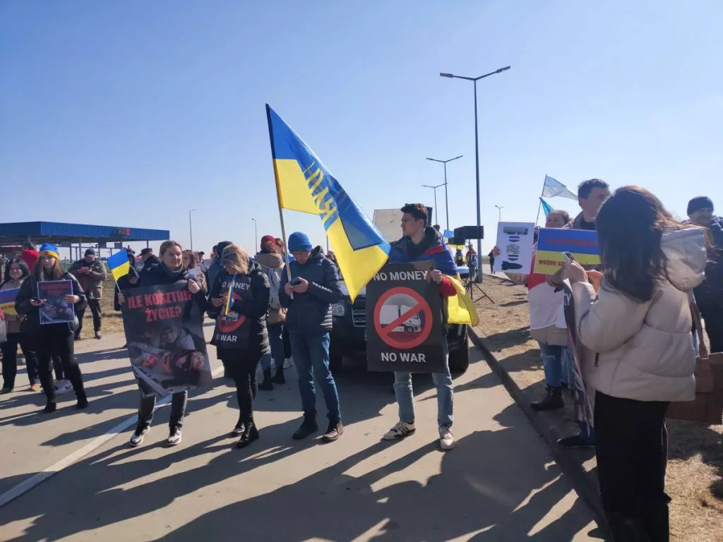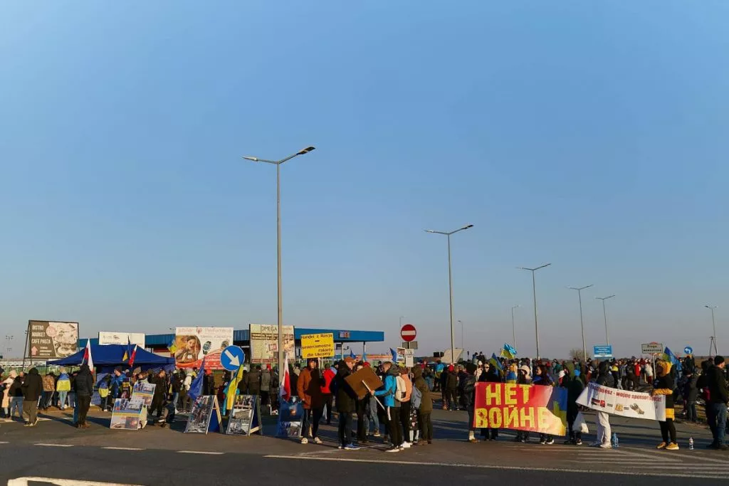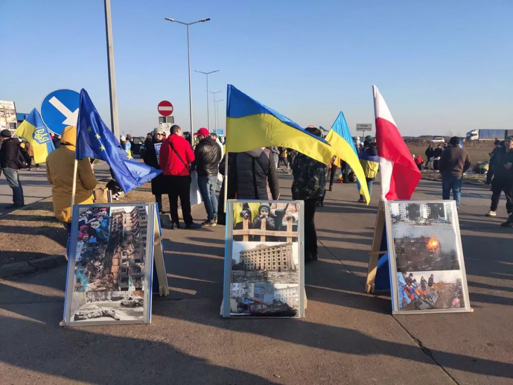 – Перетинали пункт пропуску в Устилузі ми з закордонними паспортами як туристи, що дозволяло мати інший маршрут, ніж біженці чи охочі отримати у цій країні тимчасовий прихисток. Тож нас не скеровували до волонтерських осередків прийому громадян і ми самостійно рухалися територією Польщі. На десяту годину 19-го березня дісталися пункту пропуску в Кукуриках, що на польсько-білоруському кордоні, й долучилися до мирної акції протесту, яка була погоджена з владою, а отже повністю організована, – розповідає Юлія. – Вантажівки та протестувальників розділяли близько трьох кілометрів – це була своєрідна буферна зона. До кінця цього дня черга «фур» на кордоні розтяглася на понад 45 кілометрів. У водіїв активісти разом із поліцією перевіряли документи і згідно з раніше обумовленими правилами пропускали ті вантажівки, які перевозили тварин чи рослин, тобто те, що могло загинути у дорозі. Доки ми знаходилися там, перетин кордону здійснили вантажні автомобілі, які везли свиней, елітні породи телят, ембріони курей. Коли ці вантажівки наближалися, то люди, даючи їм можливість проїхати, розходилися в обидва боки і бурхливо демонстрували свою позицію – показували плакати з написами проти війни, світлини із зображеними наслідками дій російської армії, а також вигукували «Ганьба» і спрямовували їх у слід за російським кораблем.