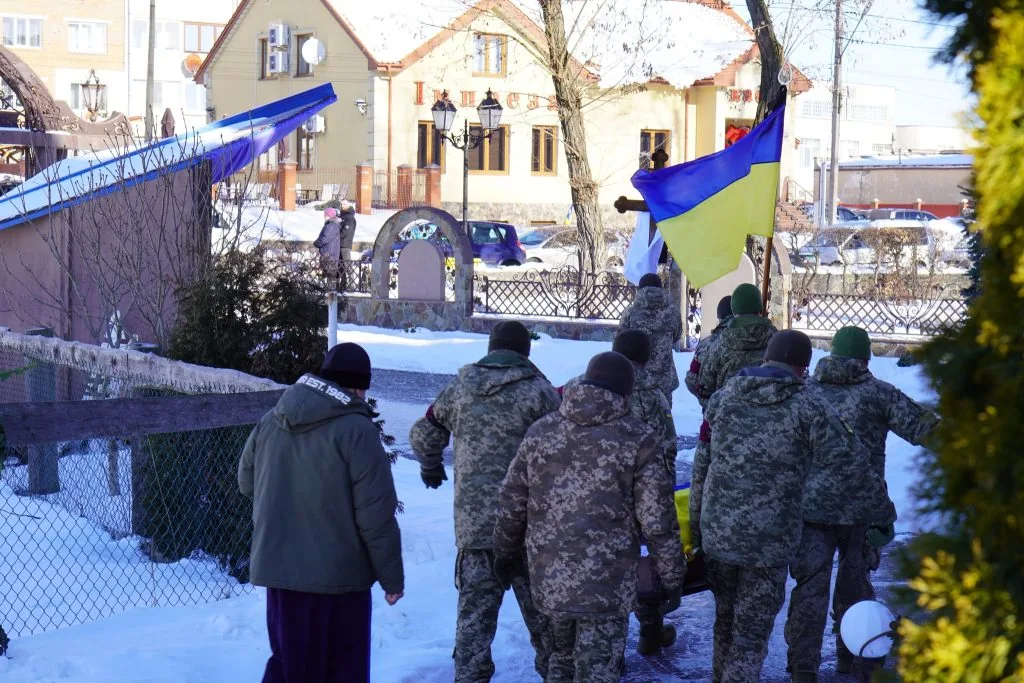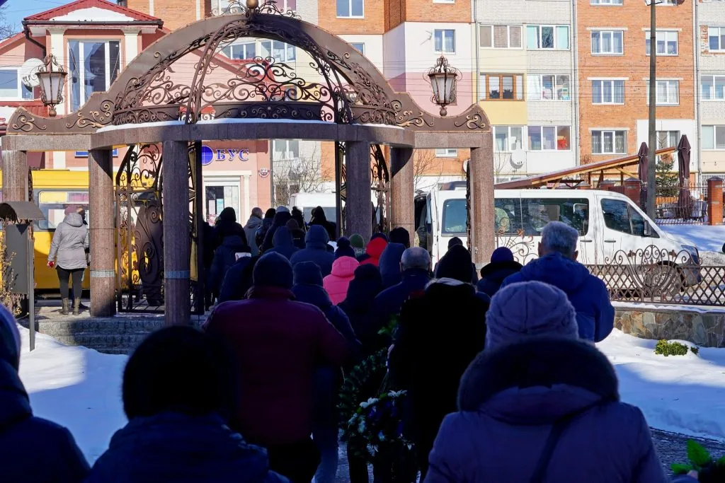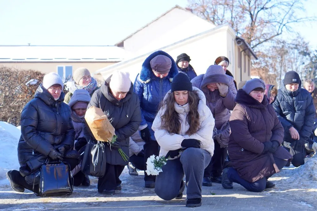 Коли траурний кортеж рухався вулицями міста, люди, попри холод, виходили на дорогу, схиляли голови та ставали на коліна, висловлюючи вдячність за подвиг військовослужбовця.