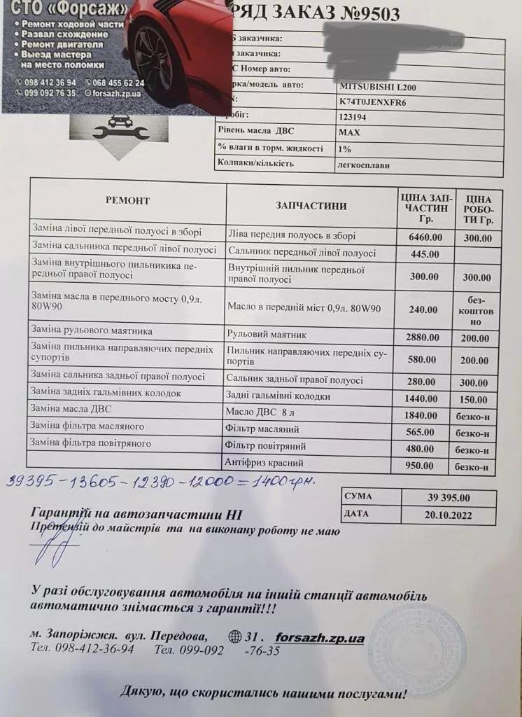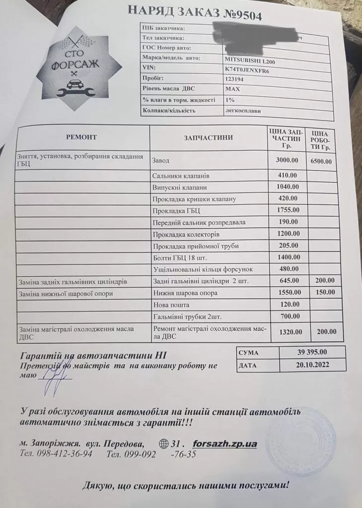 “На одні лише запчастини пішло майже 40 тисяч гривень: сальники, пильники, мастило, рульовий маятник, гальмівні колодки, випускні клапани, фільтри, задні гальмівні циліндри, ущільнювальні кільця форсунок, нижня шарова опора і ще багато іншого”, – зазначила волонтерка.