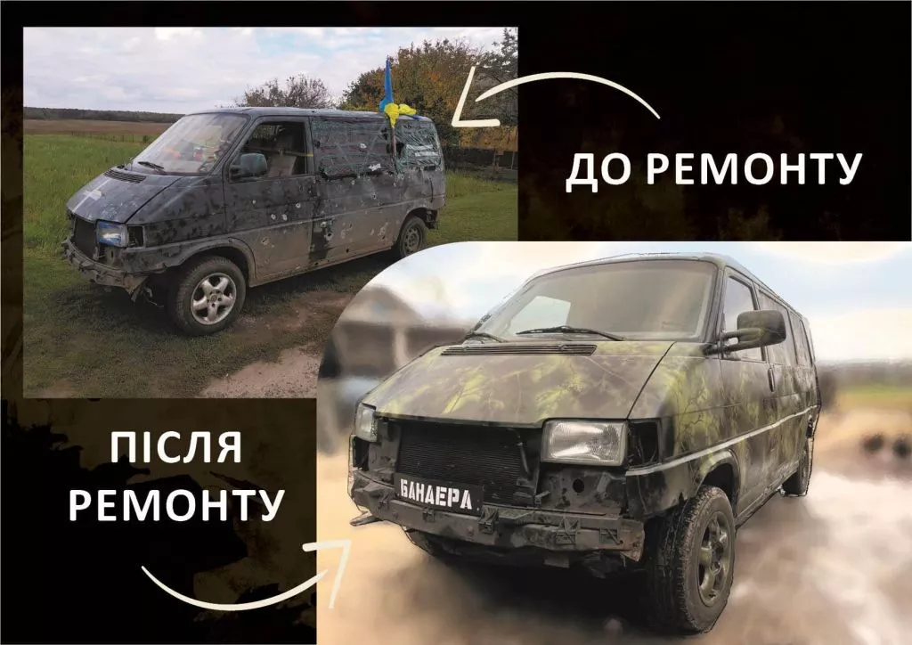 Завдяки допомозі небайдужих, які залюбки відгукнулися і скинули кошти, вдалося відремонтувати пікап Mitsubishi L200 і два Volkswagen T4. Ці автівки добряче постраждали під час бойових дій з рашистами.