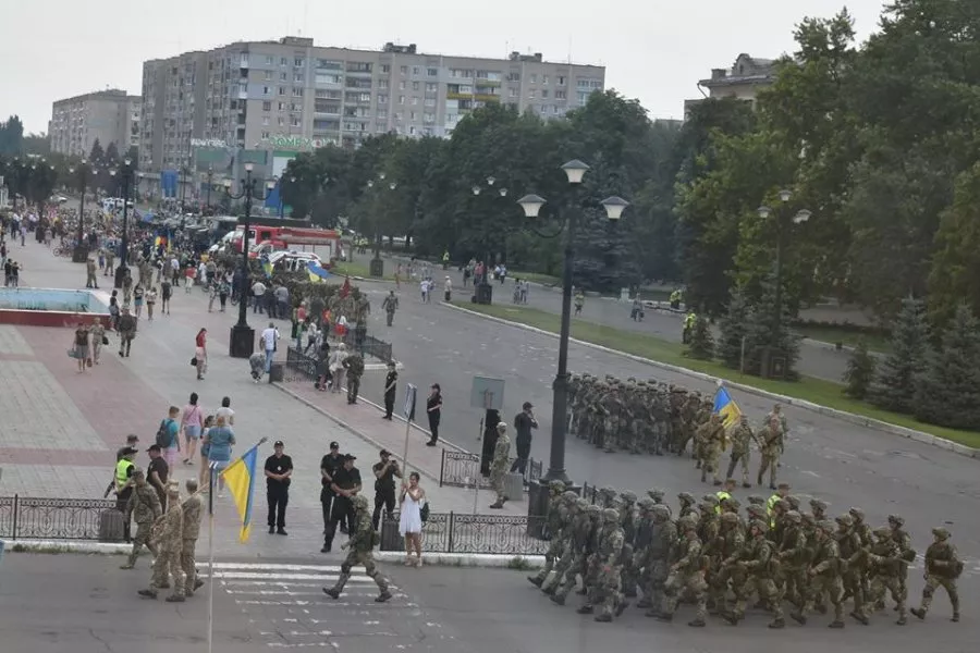 Військовослужбовці 14 окремої механізованої бригади із Володимира-Волинського взяли участь у параді з нагоди звільнення Лисичанська на Луганщині.